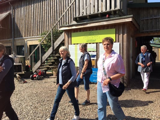 Pünktlich um 15 Uhr wurden wir auf dem Hof Fuhlreit von Arne Sierck herzlich begrüßt. Er erzählte uns zur Philosophie des Hofes, dass man gerne selber entscheiden wollte, was mit der Milch geschieht und zu welchen Preis die Milchprodukte vermarktet werden. Der größte Vorteil sei jedoch, die verkürzte Lieferkette zum Verbraucher. In der Meierei erhielten wir ausführliche Informationen zu den einzelnen Arbeitsabläufen. Bei der weiteren Verarbeitung wird sehr viel Wert auf regionale Produkte gesetzt wie z.B. die Früchte für den Joghurt. Wir haben alle gespürt, dass die ganze Familie mit Leib und Seele für den Betrieb lebt und arbeitet. Nach dem anschließenden Besuch im Hofladen trat kaum Jemand die Rücktour mit leeren Taschen an. Die Meiereiprodukte sind auch nach Hause lieferbar. Wir wünschen der Familie Sierck weiterhin gutes Gelingen und bedanken uns für eine sehr informativen Nachmittag.