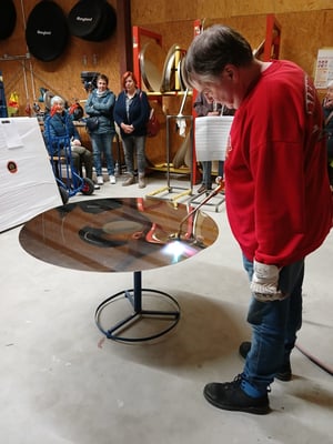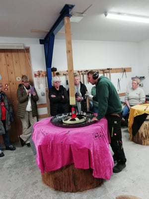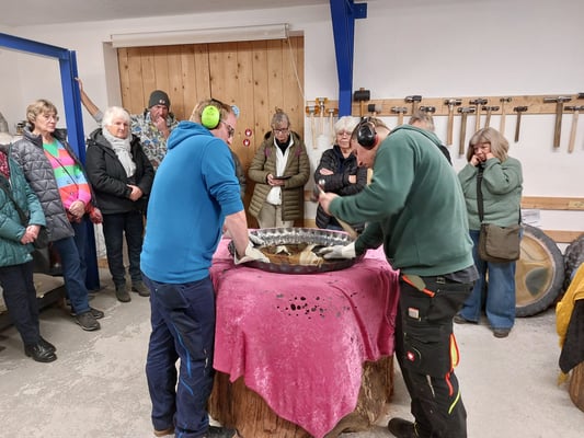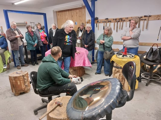 Im 06.11.2024 haben wir uns dann unser Hohner “Gongland“ mal näher angeschaut. Seit 2018 befindet sich diese kleine Firma von Inhaber Rolf Nitsch und seiner 5 köpfigen Crew schon im Hohner Industriegebiet. Das Gongland ist der zweitgrößte Hersteller von Gongs in ganz Deutschland und exportiert seine exqusite Handarbeit in die ganze weite Welt. Wir durften bei einigen Schritte der Gongherstellung zuschauen und es wurden sehr viele Fragen zu diesem beeindruckenden Instrument beantwortet. Zum Schluss durften wir noch einem kleinen Gongkonzert lauschen. Es ist schon immer wieder erstaunlich, welch tolle Sachen man vor der eigenen Haustür hat.