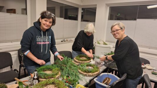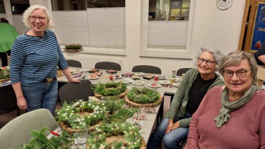Am Mittwoch, den 12. November, trafen sich 20 kreative Teilnehmerinnen im Feuerwehrhaus, um gemeinsam Adventskränze zu gestalten und sich auf die bevorstehende Weihnachtszeit einzustimmen. Bei weihnachtlicher Musik entstand eine besonders gemütliche Atmosphäre – sogar ein spontanes Flötenkonzert von Janne, die Tochter einer Teilnehmerin sorgte für einen zusätzlichen Hauch Adventsstimmung.