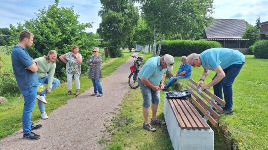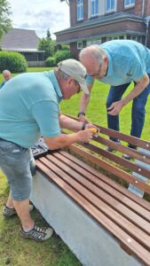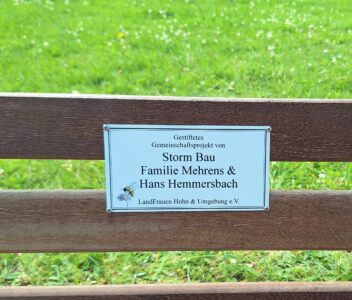 Doch damit nicht genug: Zwei engagierte LandFrauen haben sich kurzerhand zusammengetan und in Eigeninitiative auch noch die neue Sitzbank gestiftet – im Namen des Vereins. Entstanden ist ein echtes Gemeinschaftsprojekt, bei dem Familie Mehrens, Hans Hemmersbach, die Storm Bau GmbH sowie die Gemeindearbeiter mit anpackten. Die neue Bank wurde am beliebten Fahrrad- und Wanderweg in der Nähe der Transall und dem Dorfmuseum aufgestellt – ein Ort, der bereits vor zwei Jahren durch das Spendenschwein finanzierte Insektenhotel und die kunstvolle, rostige LandFrauenblume verschönert wurde.